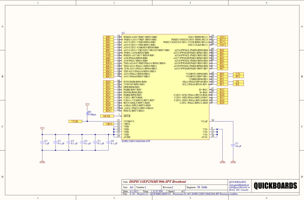 Skip the tedious research and manual entry. Download the production-ready schematic block for the DSPIC33EP256MU806 directly from the Quickboards Library.