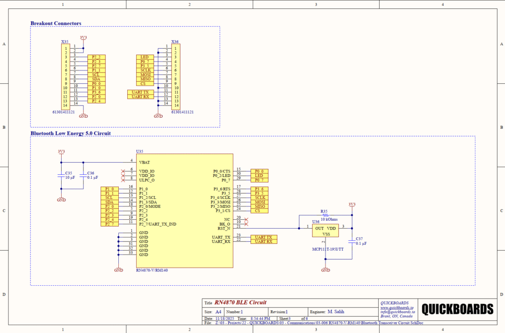 Skip the tedious research and manual entry. Download the production-ready schematic block for the RN4870-V/RM140 directly from the Quickboards Library.
