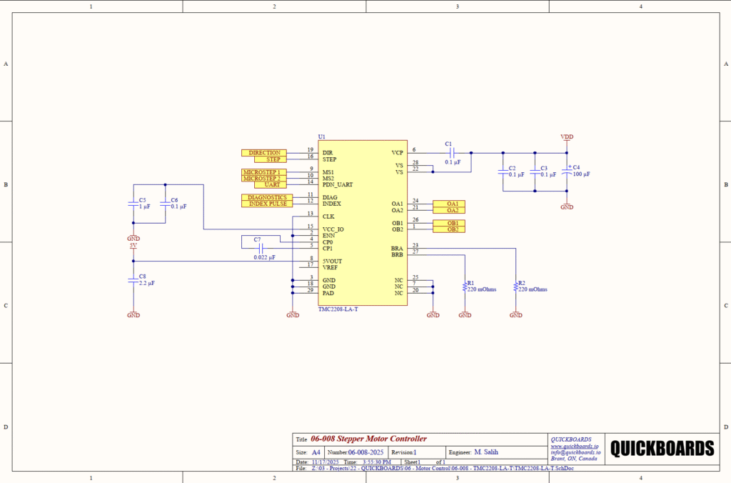 Skip the tedious research and manual entry. Download the production-ready schematic block for the TMC2208-LA-T directly from the Quickboards Library.