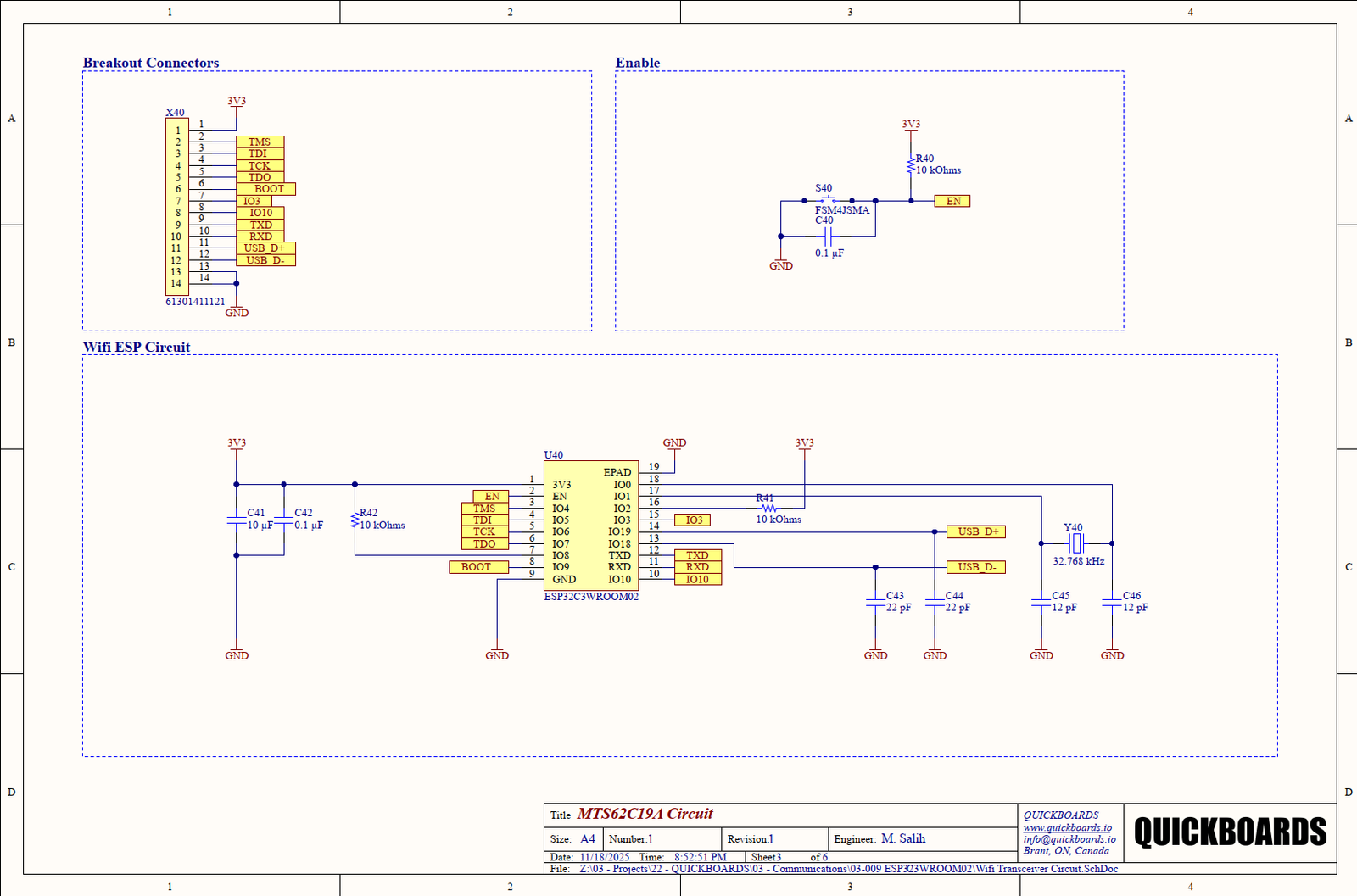 By integrating this Quickboards schematic block, engineers can expedite wireless product prototyping, reduce external component count, and rely on a secure, production-grade module optimized for modern IoT systems.