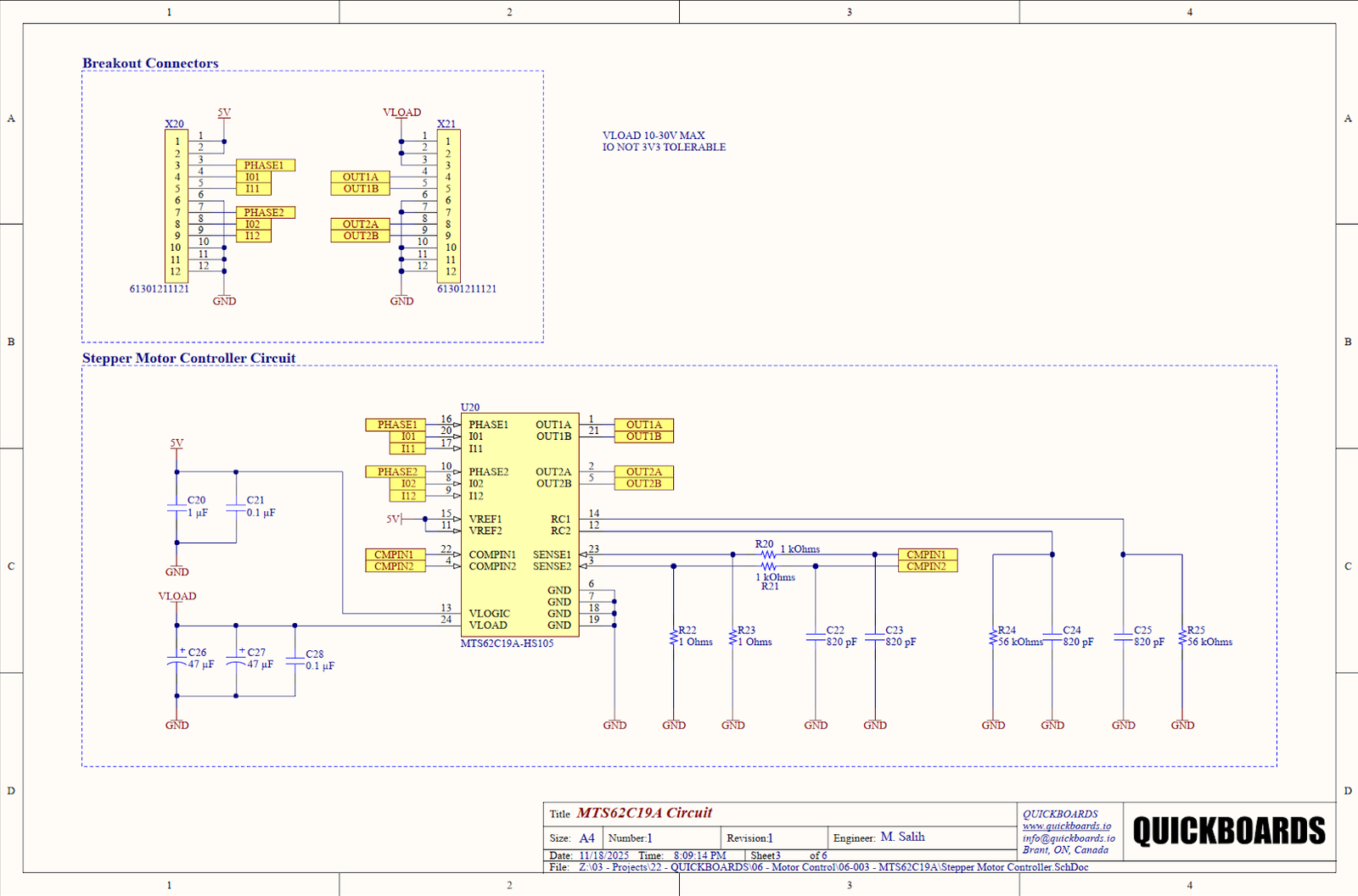 By integrating this Quickboards schematic block, engineers can accelerate motion-system development, reduce design complexity, and rely on a proven dual-H-bridge architecture that delivers stable and predictable motor control performance.